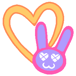 I made an orange and yellow heart with a pink and purple bunny. The eyes are hearts with X's for pupils. I made the mouth in the shape of a cat's mouth.
